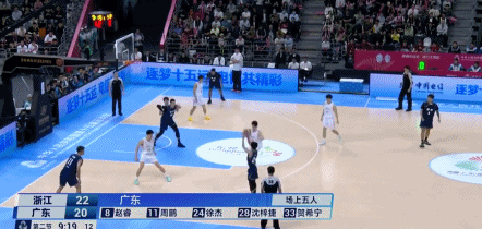 第三节还剩6分26秒,徐杰重新披挂上阵,但并没有继续个人终结为主,而是选择为队友创造机会,以及输送球权到内线,让李炎哲,周鹏攻坚浙江的禁区,造成张洪硕5次犯规离场,浙江内线更加没人。
